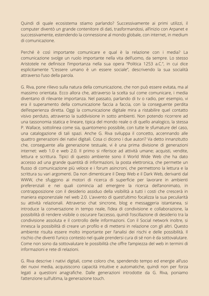 G. RIVA, Nativi digitali, Il Mulino, Bologna, 2014