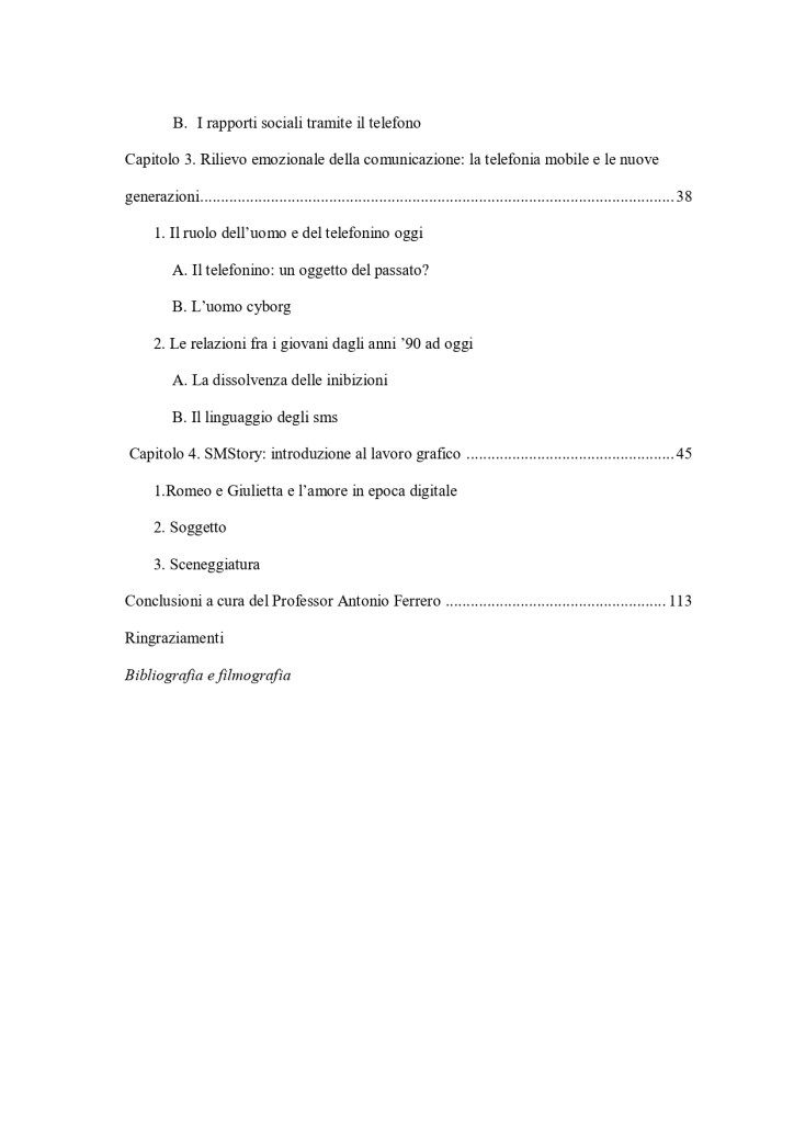 Capitolo primo consultabile su questa pagina. La pubblicazione intera è composta da 4 capitoli e pp. 119. Comprende l’allegato grafico della rielaborazione dell’opera prima Romeo & Juliet di W. Shakespeare.